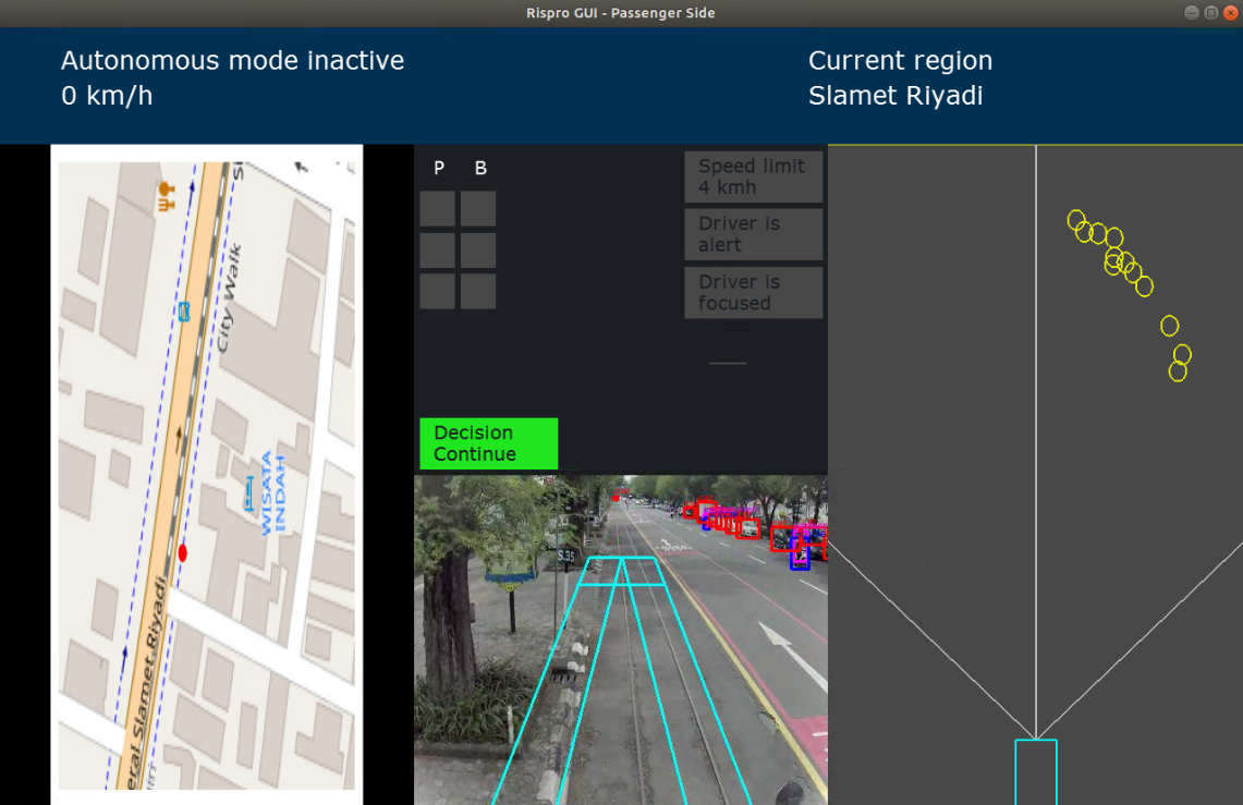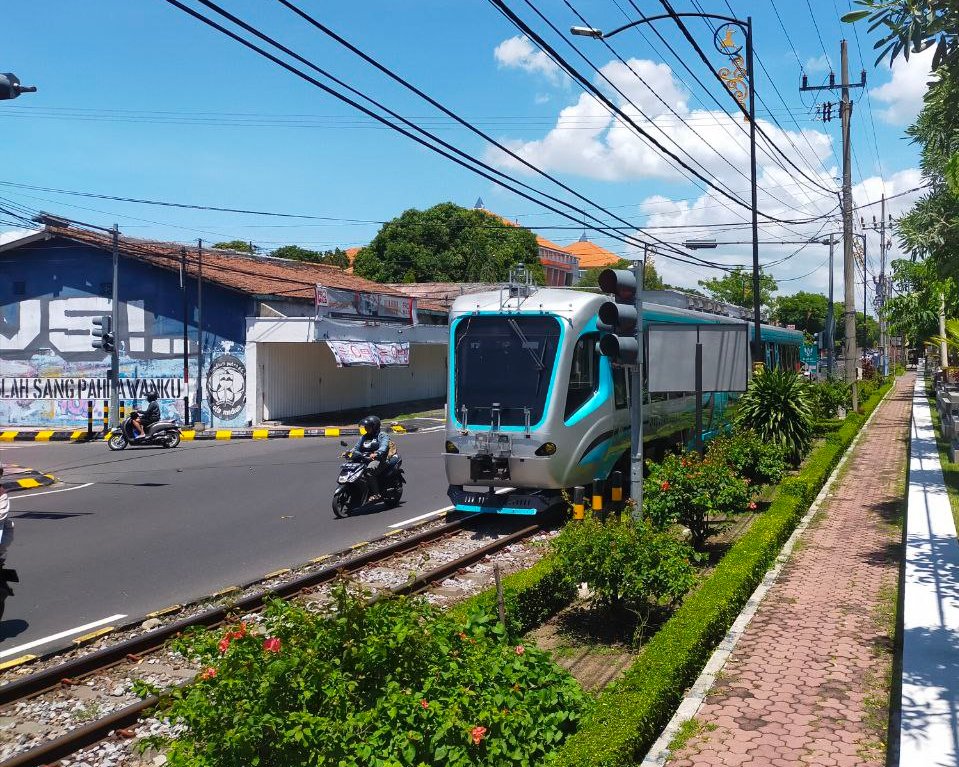 An autonomous tram developed in cooperation with the Indonesian Railway Industry Company (PT INKA) and PT Riset Kecerdasan Buatan (PT RKB).