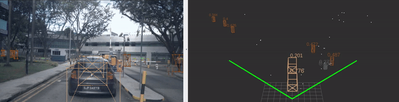 The embedded implementation can run at 24 FPS on the NVIDIA DRIVE AGX. A sample scene showing the object detection performance of the model on the nuScenes dataset and the new data distribution taken in Bandung, Indonesia is shown below.