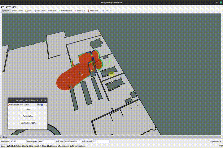 Soca is my undergraduate thesis, a solo project to develop an autonomy software for ultraviolet-C germicidal irradiation surface disinfection robots. Soca is designed to be modular and hardware agnostic. However, we use a simulated custom-built robot based on the TurtleBot3 platform that carries a 2D Lidar and a Magnetic, Angular Rate, and Gravity (MARG) sensor as our testing platform. To use this robot, the user can simply request the robot to disinfect a room by passing the room name to the robot.