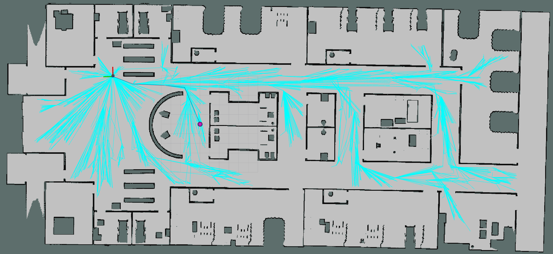 To reduce unnecessary complexities, we wrote our own C++ implementation of the localization and navigation stack, which includes the AMCL, RRT*, and STC algorithms. We wrote the program using the Robot Operating System (ROS) framework. To accompany the robot, we also wrote a graphical user interface for the user to give the robot commands using Qt.