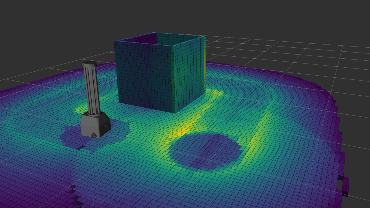 Finally, we tested and evaluated Soca in a simulated environment. As ultraviolet surface irradiation is not traditionally supported in Gazebo, we developed our own method to simulate it, described in greater depth in this paper. We open-sourced our implementation of the simulation method, accessible in this GitHub repository. The design process, implementation details, and disinfection performance evaluation are discussed in more detail in the paper of this project.